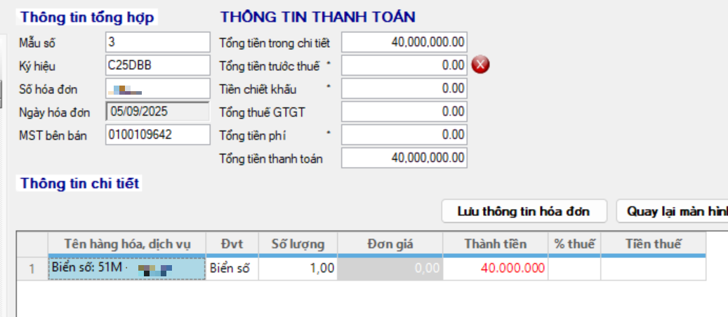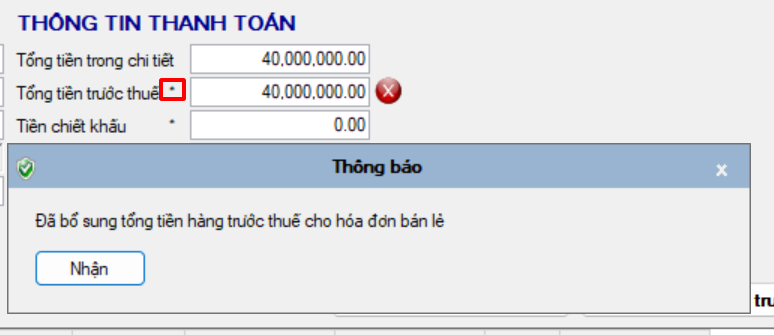 Khi phần mềm đọc thông tin, sẽ hiện khung cảnh báo “Tổng tiền trong chi tiết lệch với Tổng tiền trước thuế”