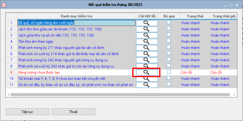 Cho phép chỉnh sửa trực tiếp ngay sau khi thực hiện xong: người dùng bấm vào ô kính lúp để phần mềm hiển thị các lỗi phát sinh.