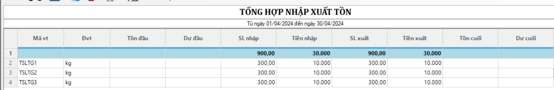 – Kiểm tra báo cáo Tổng hợp nhập xuất tồn.