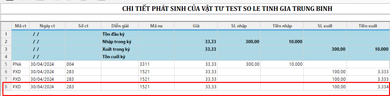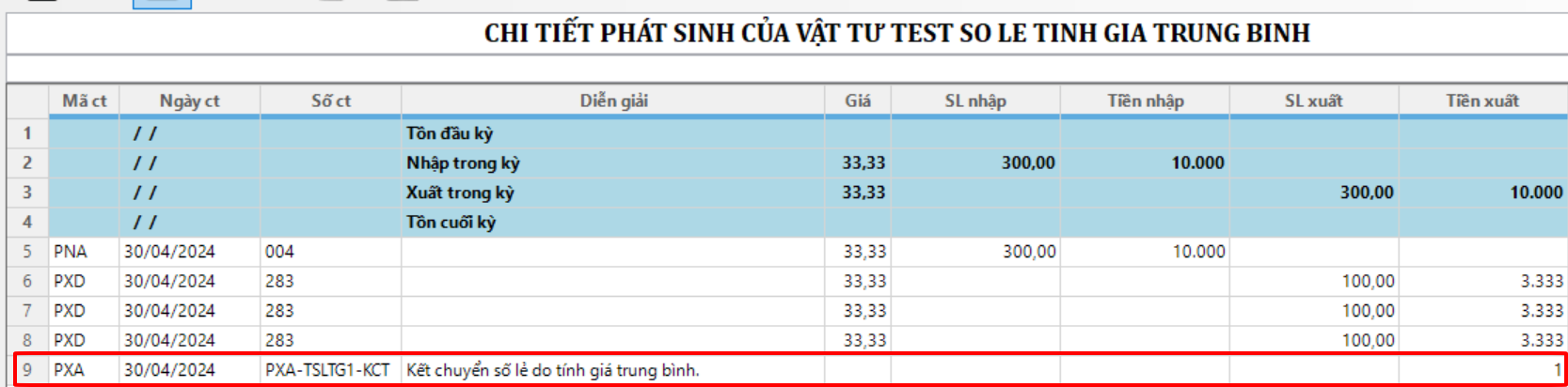 – Điều chỉnh cách tính giá trung bình và thể hiện số liệu báo cáo cuối kỳ: cách tạo phiếu xuất chênh lệch cho các trường hợp số lượng bằng 0, tiền khác 0.