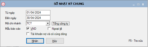 - Đối với tài khoản không phải công nợ, F5 vẫn như cũ.