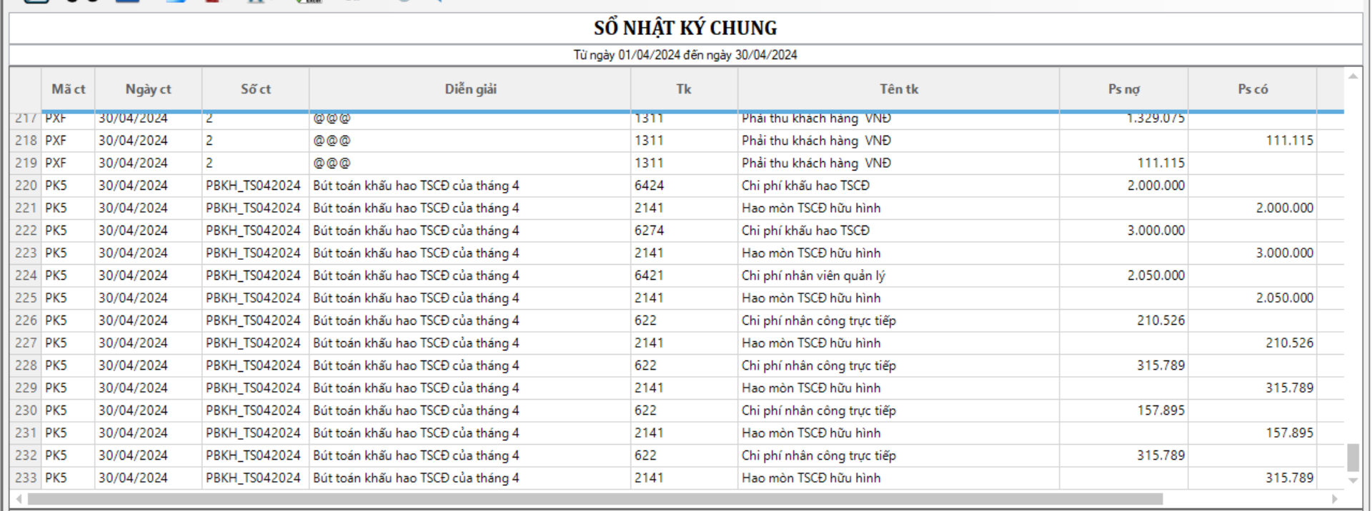 Lưu ý: bút toán khấu hao sang sổ chi tiết, phần mềm không xóa, người dùng muốn điều chỉnh lại thì vào tính năng bút toán để bút toán lại.