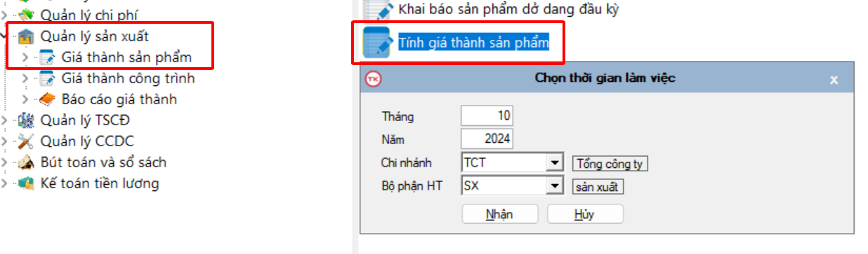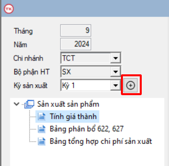 + Trong giao diện tính giá thành sản phẩm chọn icon