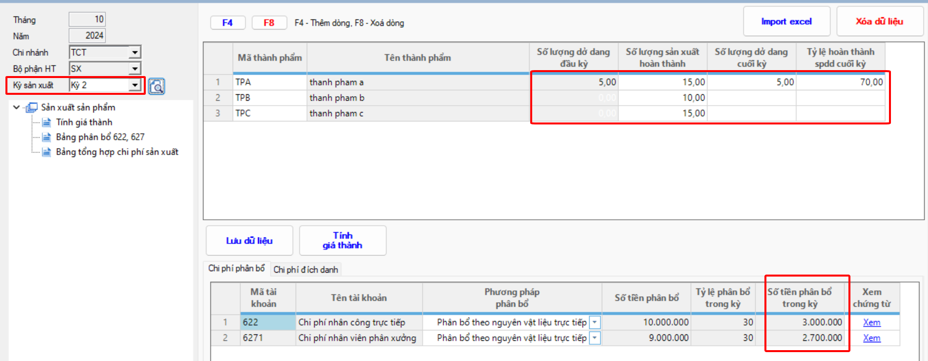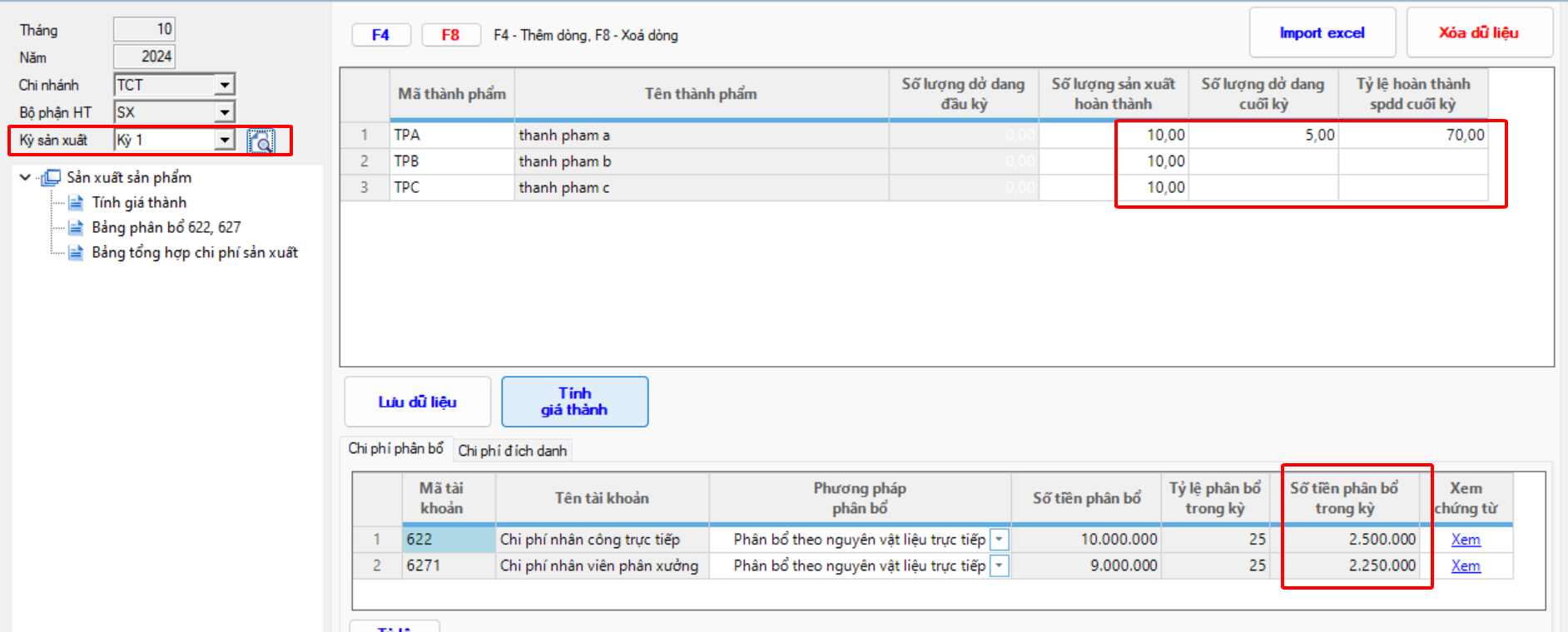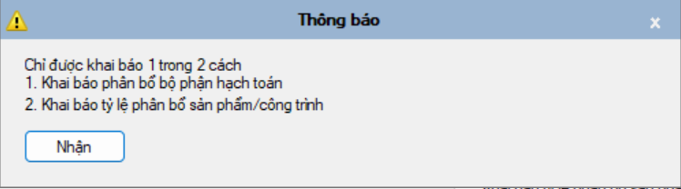 2. Khai báo tỷ lệ phân bổ sản phẩm/công trình