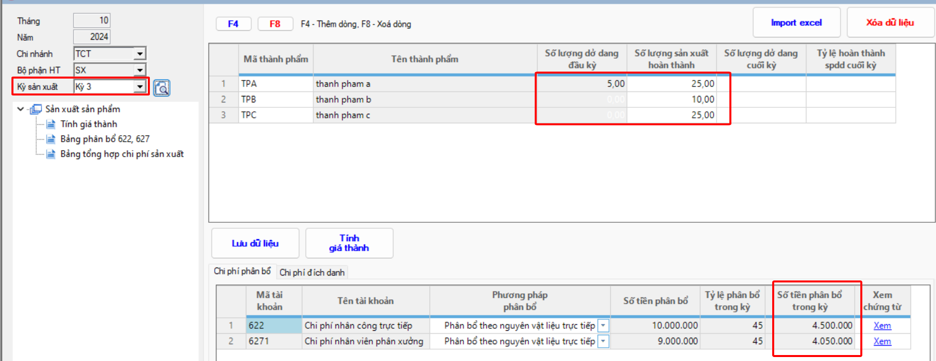 Kỳ 3 – có dở dang đầu kỳ từ kỳ trước đó (kỳ 2 cùng tháng)