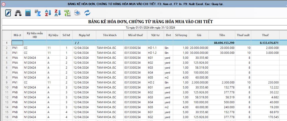 2. Thêm báo cáo bảng kê hóa đơn, chứng từ hàng hóa mua vào chi tiết thể hiện chi tiết từng hàng hoá/dịch vụ trên hoá đơn