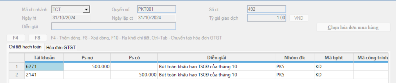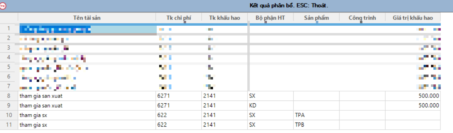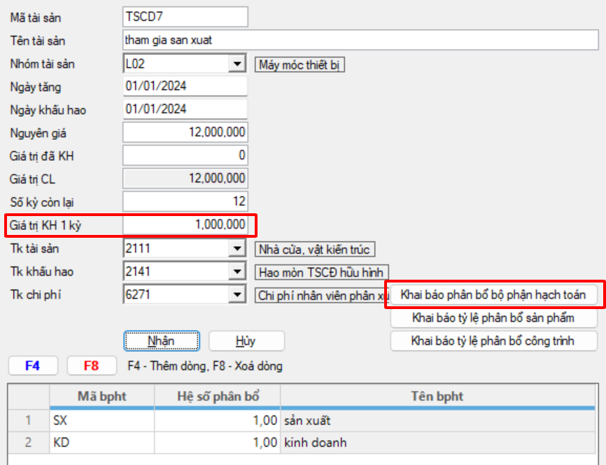 Sửa tính năng bút toán khấu hao tài sản cố định, chia giá trị khấu hao theo tỷ lệ sử dụng bộ phận hạch toán (nếu có khai báo)