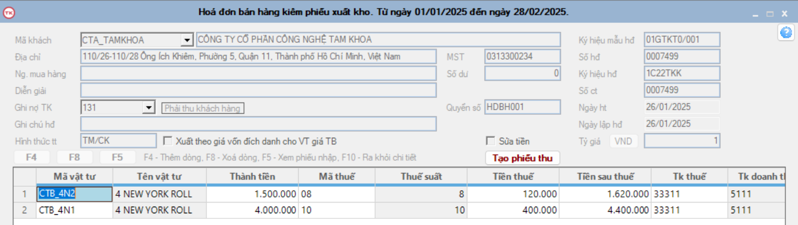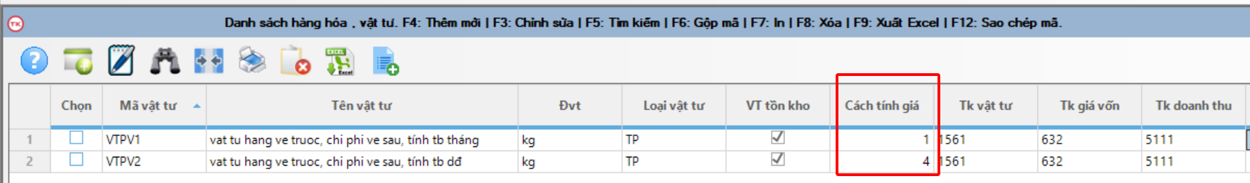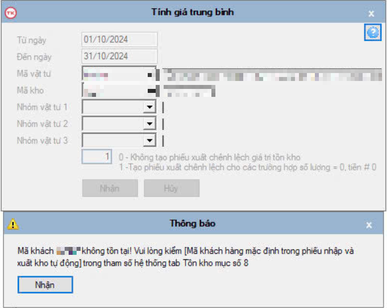 * Lưu ý: nếu trong quá trình tính giá trung bình mà bị báo lỗi “Mã khách … không tồn tại …”