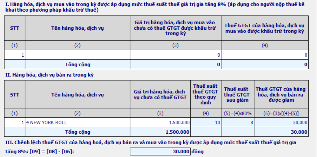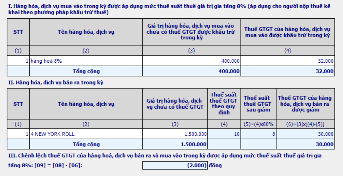 a) Trong tháng có phát sinh hoá đơn đầu vào 8% và hoá đơn đầu ra 8%