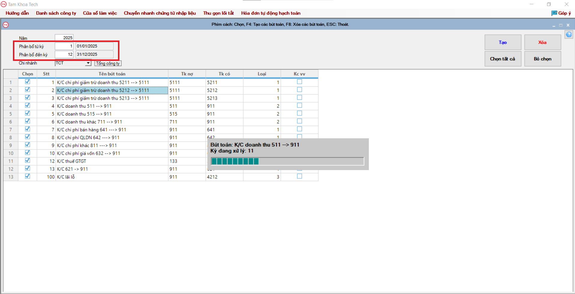 | 3 | Bút toán kết chuyển tự động cuối kỳ | Bút toán kết chuyển tự động cuối kỳ: cho phép kết chuyển cả năm (kết chuyển nhiều kỳ). |
