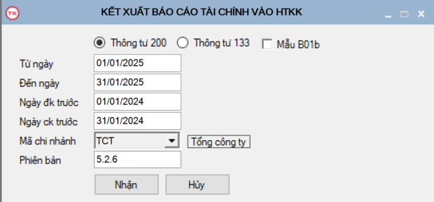 4. Hỗ trợ export Báo cáo tài chính vào HTKK phiên bản 5.2.6: