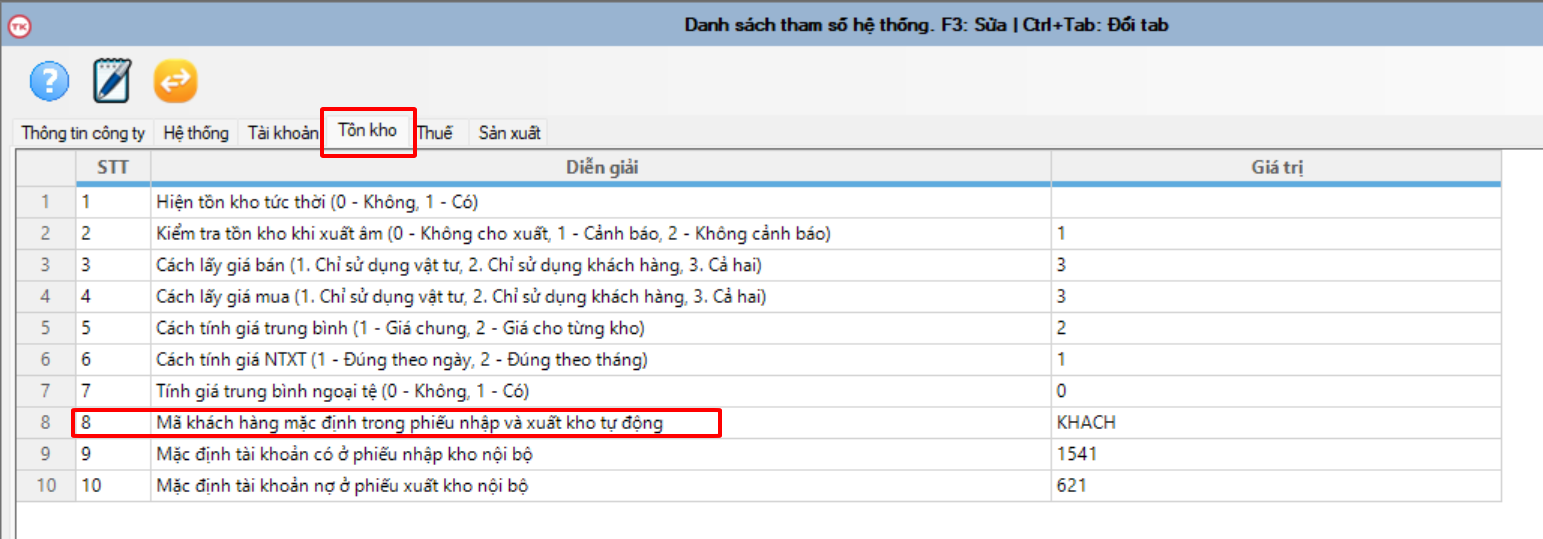 Thì hãy vào danh sách tham số hệ thống, chỉnh lại tham số mã khách hàng cho phù hợp (mã khách hàng phải là mã đã có trong danh mục khách hàng)