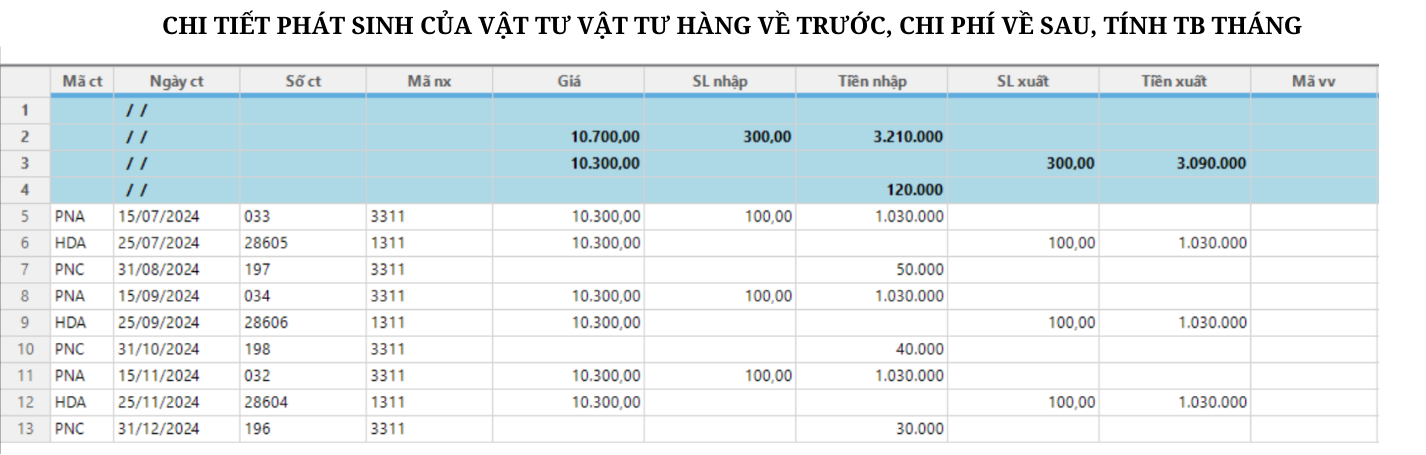 Báo cáo tổng hợp nhập xuất tồn từ tháng 7 đến tháng 12, sau khi đã tính giá