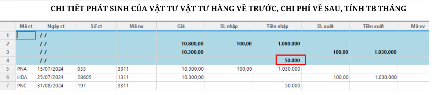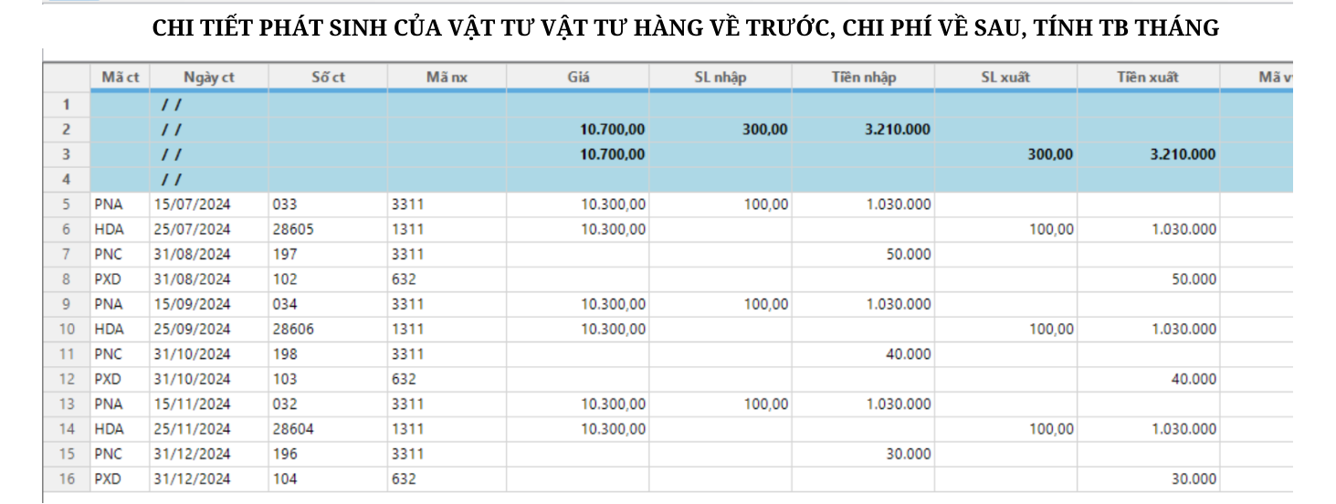 Ví dụ trong tháng 7 nhập hàng về, và trong tháng 7 hàng cũng xuất đi hết, cuối tháng 7 tồn kho số lượng bằng 0, tiền bằng 0