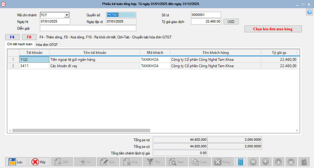 🌟 Thao tác chung ở các chứng từ/phiếu khi hạch toán giao dịch ngoại tệ