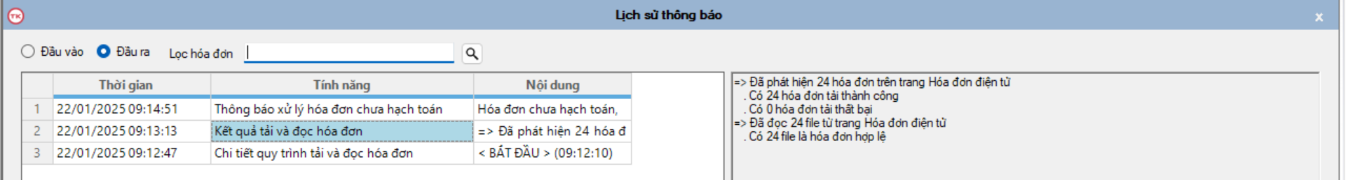 Tính năng xem nhật ký thông báo của phần mềm tự động hạch toán Boro AutoAccounting