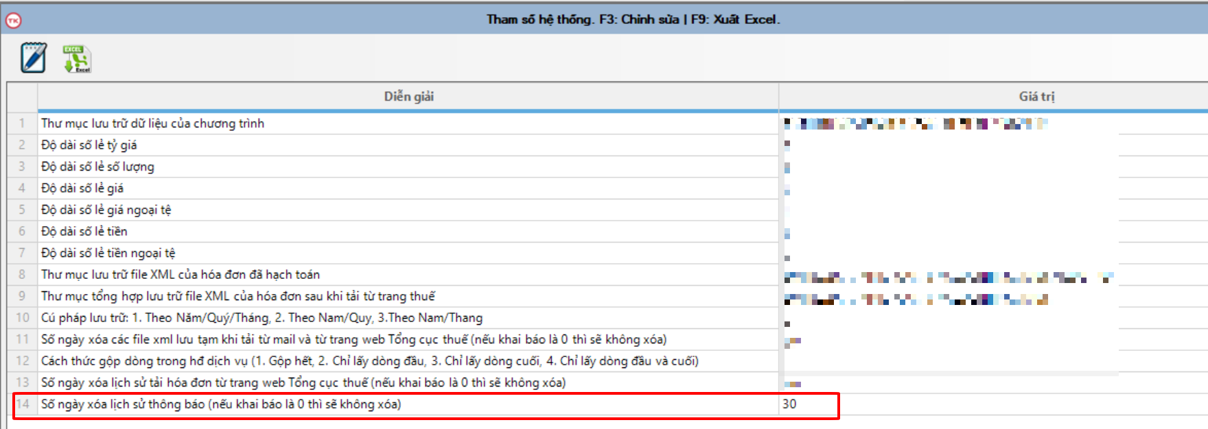 Cho phép khai báo số ngày lưu lại nhật ký thông báo
