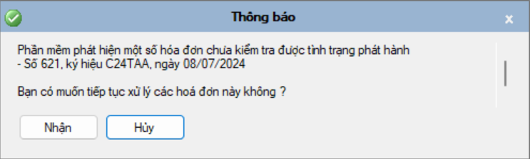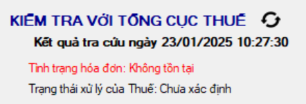 Hóa đơn sau khi kiểm tra tình trạng phát hành, báo không tồn tại