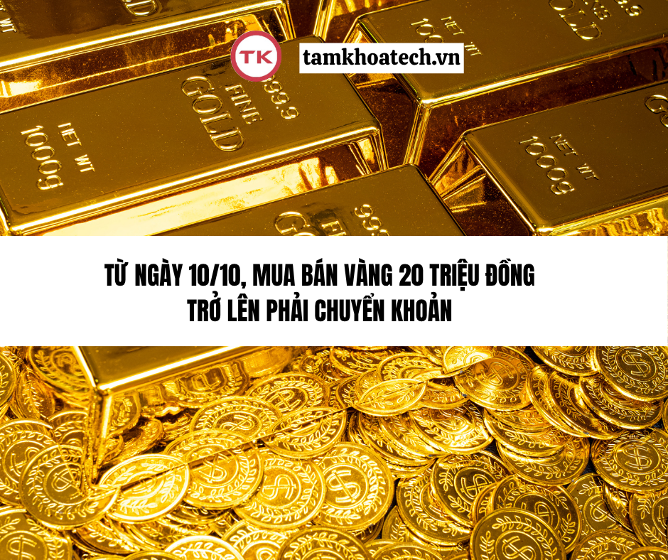 Cơ chế Nhà nước độc quyền sản xuất vàng miếng chính thức bị bãi bỏ từ ngày 10/10. Các giao dịch mua bán vàng từ 20 triệu đồng trong ngày trở lên phải được thanh toán qua chuyển khoản.